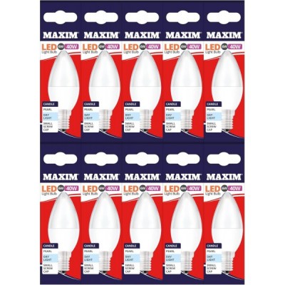 Maxim LED Candle Small Edison Screw (Daylight White) - 6watt (40watt) (Pack 10), 40MLCSESDL5X10 1 Count (Pack of 1) Daylight White