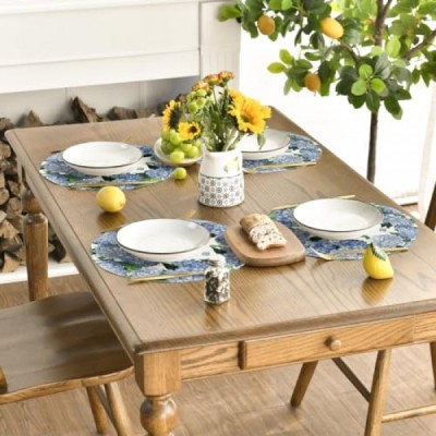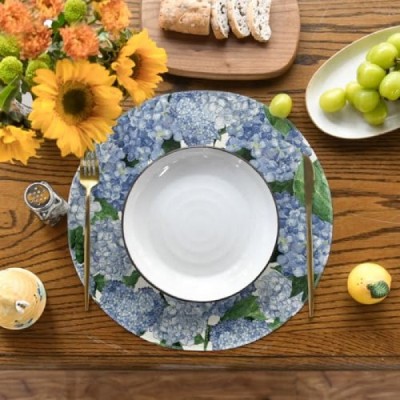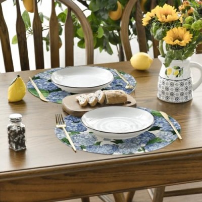 Artoid Mode Watercolor Hydrangea Summer Round Placemats Set of 4, 15 Inch Summer Round Table Mats for Dining Decoration