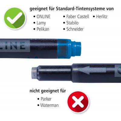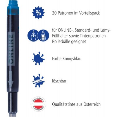 LAMY vista Füllhalter 012–Federstärke M & ONLINE,17026,20x AA8kompatible LamyPatronen blau, Universal-Tintenpatronen, Ersatz-Patronen,löschbar, auswaschbar, auch Tintenpatronen-Rollerbälle, königsblau Füllhalter