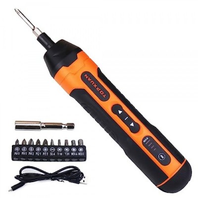 TOPXUAN 4V 충전식 무선 드라이버 키트, LED 조명 및 USB 충전 배터리, 속도 조절 가능, 전기 및 수동, USB 케이블 및 11pcs 비트 세트, 1비트 확장기 포함