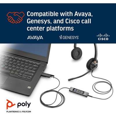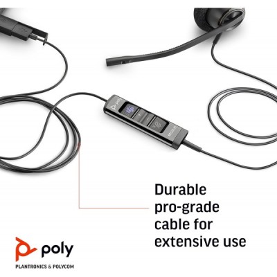 Poly – EncorePro 525-M-USB-Headset mit USB-A und USB-C (Plantronics) – Akustischer Gehörschutz – Tasten zum Halten und Annehmen von Anrufen – Optimiert für Teams – Binaural Stereo Standard Teams zertifiziert