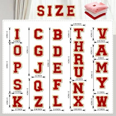 26pcs 셔닐 실 레드 영어 문자 A-Z, 알파벳 글리터 패치 스웨터 의류, 모자, 가방, DIY 액세서리 (빨간색, A-Z) 용 수 놓은 바느질/철제 패치 아플리케