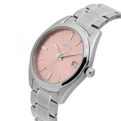 세이코 쿼츠 핑크 다이얼 남성용 시계 SUR523