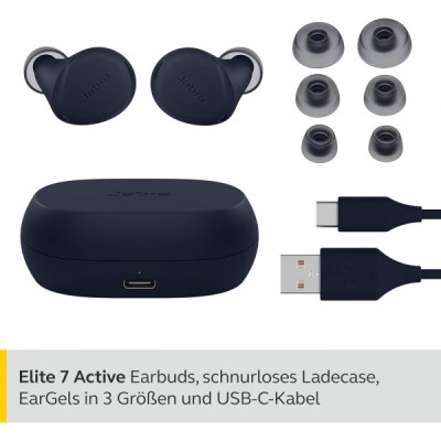 Jabra Elite 7 Active In Ear Bluetooth Earbuds - True Wireless Sport Kopfhörer mit ShakeGrip für sicheren Halt und anpassbarer, aktiver Geräuscheunterdrückung - Dunkelblau, Einheitsgröße Elite 7 Active Navy Blau