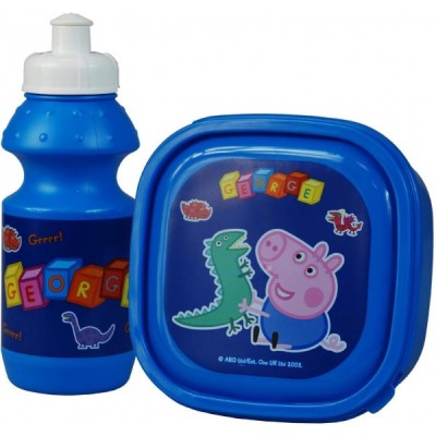 Peppa Pig George 8PC Back to School Bundle - inc Backpack, Drawstring Sports Bag, Insulated Lunch Bag, Sandwich Box, Water Bottle, Coin Pouch, Pencil Case & Stationery Set.