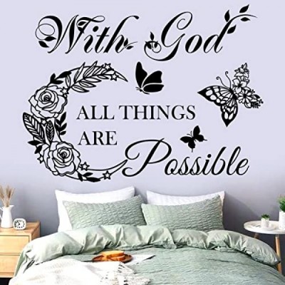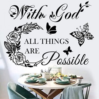 Inspirational Wall Decals with God Things are Possible Vinyl Wall Sticker Peel and Stick Quote Bible Sticker Christian Wall Decor Wall Art Stickers for Home Walls Living Room Bedroom Decoration.