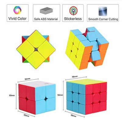 Roxenda Speed Cube Set, Speed Cube Bundle of 2x2x2 and 3x3x3 Cube Smoothly Magic Cube Collection for Kids Teens & Adults [2 Pack] (Stickerless)