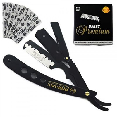 전문 이발사 직선 면도기 - 이발사용 직선 면도날과 호환되는 이발사, 블랙 매트 직선 Razor-160-10054BM3H(블랙 매트와 블랙 프리미엄 블레이드)
