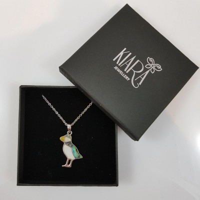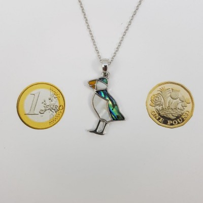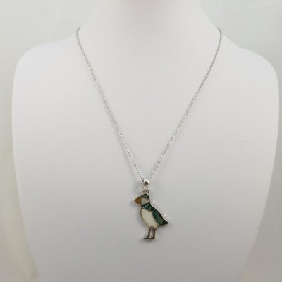 Kiara Jewellery Puffin Pendant Necklace Inlaid With Natural Green And Mother Of Pearl Paua Abalone