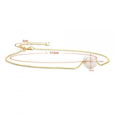Orovi Jewellery 여성용 팔찌 옐로우 골드, 화이트 라운드 담수 진주 7.5mm 팔찌, 14캐럿(585) 골드, 조절 가능한 길이 17.5 - 21.5cm, 골드