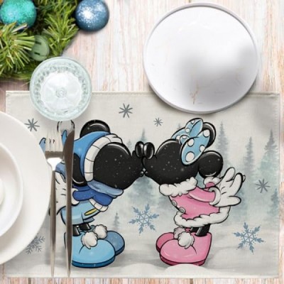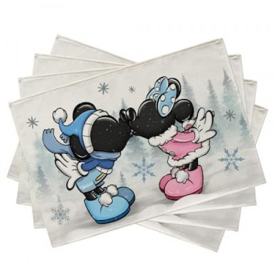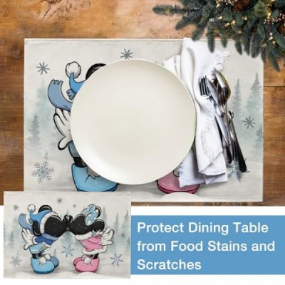 Seliem 겨울 만화 마우스 플레이스 매트 4 개 세트, 소나무 눈송이 농가 식탁 장소 매트, 크리스마스 휴일 계절 주방 장식 홈 인테리어 12x18 인치