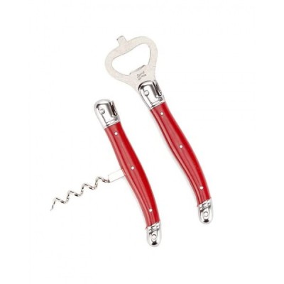Jean Dubost Laguiole Corkscrew & Bottle Opener Set with Handles, Red
