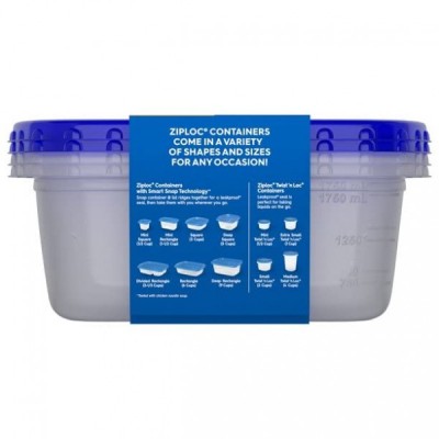 Ziploc Large Rectangle One Press Food Storage Container, 2 count per pack - 6 per case.6