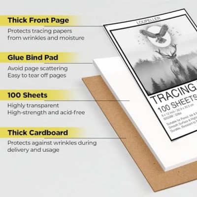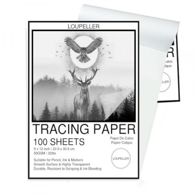 LOUPELLER Tracing Paper for Drawing 100 Sheets – 9” x 12” – 32lb / 50g – Wrinkle Free Highly Transparent Tracing Paper Pad – Works with Pen, Pencil & Marker – for Artists, Architects & Kids