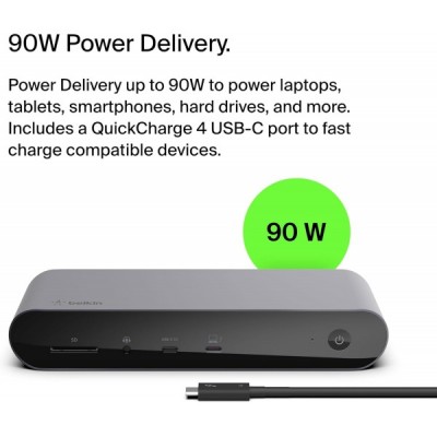 Belkin Thunderbolt 4 Dock Pro, 싱글 8K @ 30hz, 듀얼 4K 디스플레이 호환 도킹 스테이션, Thunderbolt 4 포트 2개, HDMI 포트 2개, 90W Power Delivery PD, 오디오 입력/출력, MacBook Pro, XPS 등