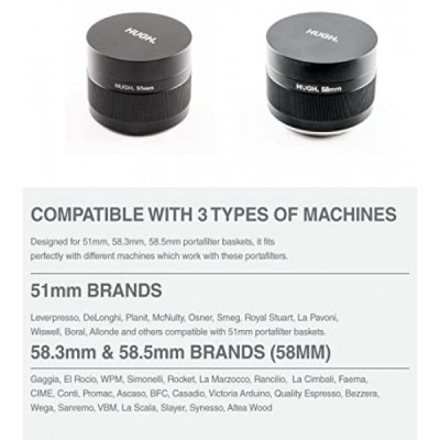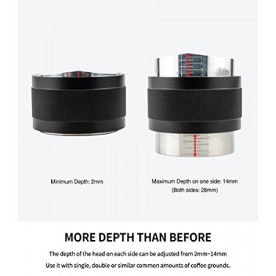 HUGH 58.3mm Coffee Distributor and Tamper/Coffee Leveler & Hand Tamper, Fits 58.3mm Portafilter Basket, Adjustable Depth Espresso Distribution Tool. One-Touch Dual Head Tamper & Distributor