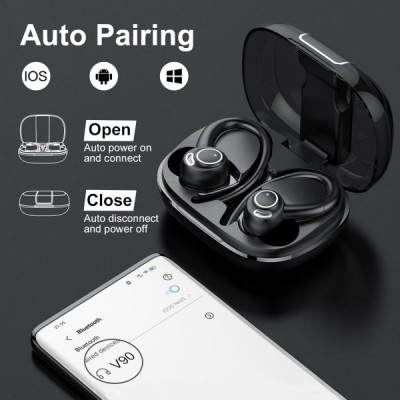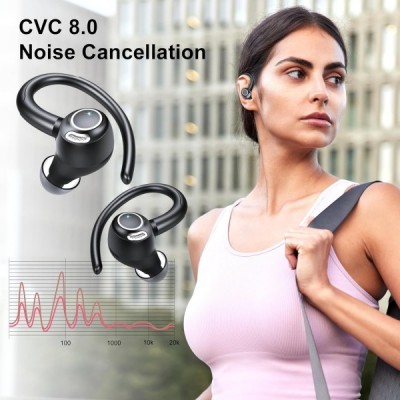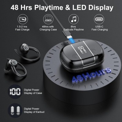 Csasan 블루투스 스포츠 헤드폰, 이어 후크가 있는 무선 블루투스 5.3 헤드폰, 마이크가 있는 48시간 3D 스테레오 CVC 8.0 HD 통화 인이어 헤드폰, 듀얼 LED 디스플레이, 터치