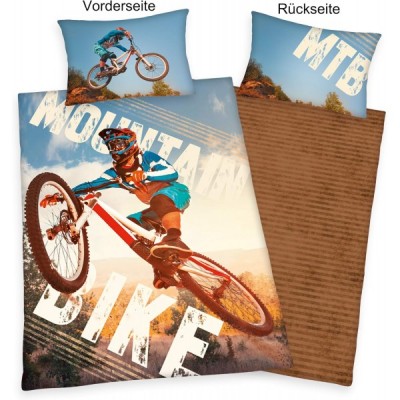 Herding Young Collection Bettwäsche-Set, Mountainbike Wendemotiv, Bettbezug 160 x 210 cm, Kopfkissenbezug 65 x 100 cm, Baumwolle/Renforcé Schweizer Größe