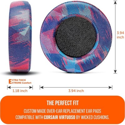 Wicked Cushions에서 제조한 Corsair Virtuoso 게임용 헤드셋용 WC 업그레이드된 교체용 이어 패드 | 향상된 내구성, 두께, 더 부드러운 가죽 및 방음 | Speed Racer
