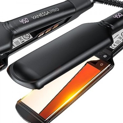 VANESSA PRO 두꺼운 모발을 위한 2인치 고데기, 세련된 스타일을 연출하는 원 패스용 100% 순수 티타늄 와이드 플랫 아이언, 전문가용 고데기(2인치)