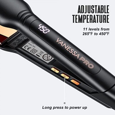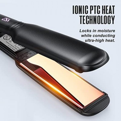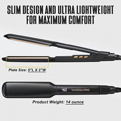 VANESSA PRO 2 Inch Hair Straightener for Thick Hair, 100% Pure Titanium Wide Flat Iron for One Pass to Achieve a Sleek Look, Professional Hair Iron(2-inch)
