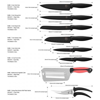 XYJ Authentic Since1986,Professional Knife Sets for Master Chefs,Kitchen Knife Set with Bag,Cover,Scissors,Culinary Butcher Cleaver,Cooking Cutting,Utility,Bread,Santoku