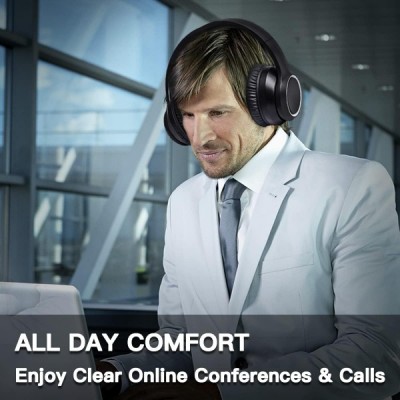 Olyre Drahtlose KopfhöRer über Ohr Aktive Geräuschunterdrückung Bluetooth-KopfhöRer mit Mikrofon, 30h Spielzeit Overhead Hi-Fi-Stereo-Kopfhörer mit Weichen Protein Ohrenschützer Für Home Office PC TV AN06
