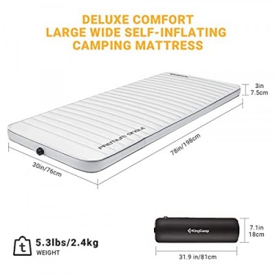 KingCamp Self Inflating Sleeping Pad for Camping Ultra Thick Double Single Foam Mattress High R Value Camping Air Pad Mat, Multi Colors & Sizes