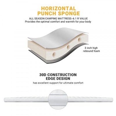KingCamp 캠핑용 자체 팽창식 슬리핑 패드 울트라 두꺼운 더블 싱글 폼 매트리스 높은 R 값 캠핑 에어 패드 매트, 멀티 색상 및 크기