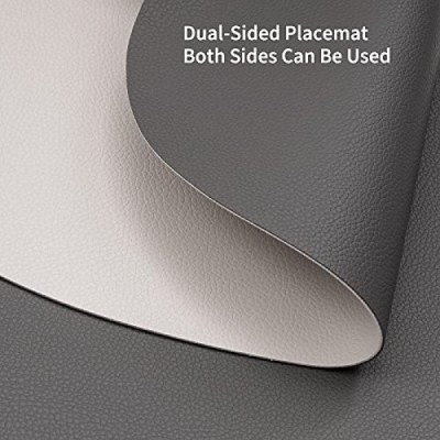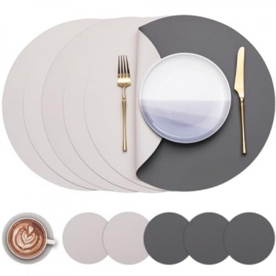 Myir JUN Round Table Placemats Set of 6 Faux Leather Place Mats and Coasters 15 inch Round Placemats Dual Sided Placemats Non-Slip Placemats Stain Resistant Placemats (Gray & Beige, Set of 6)