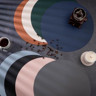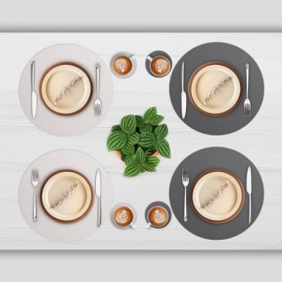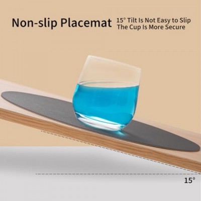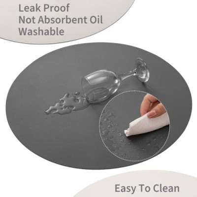 Myir JUN 원탁 플레이스매트 인조 가죽 플레이스 매트 및 컵받침 6개 세트 15인치 원형 플레이스매트 양면 플레이스매트 미끄럼 방지 플레이스매트 얼룩 방지 플레이스