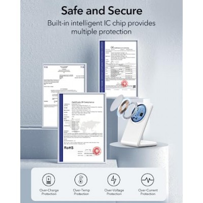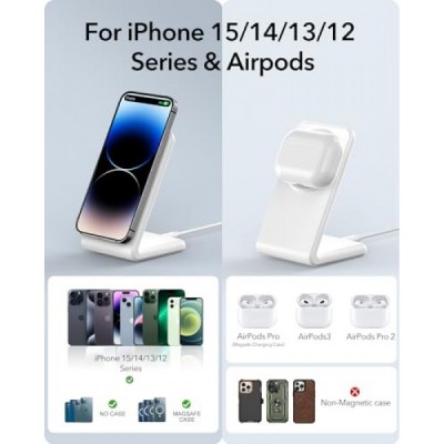 iPhone 15/14/13/12 시리즈용 Meifigno 자기 무선 충전기 2팩, AirPods 3/2/Pro, PD 20W USB-C 어댑터 x2를 사용한 고속 충전, iPhone 15 14 13 Pro Max Plus Mini용 MagSafe 충전기 스탠드, 화이트