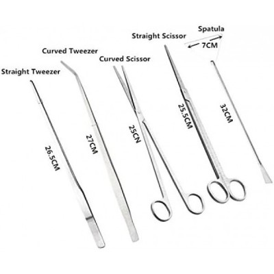 Signstek Aquarium Aquascaping Set, 5 in 1 Aquarium Tool mit lang Pinzette Schere Kiesspatel Spatel für Pflanzenpflege und Design in Aquarien fünf