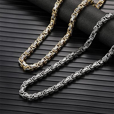 AFSTALR Men's Byzantine Chain Silver Gold Black for Men, Stainless Steel Wide Men's Chain 4/6/8 mm Byzantine Chain Necklace for Men Length 45/50/55/60/65 cm, Stainless Steel