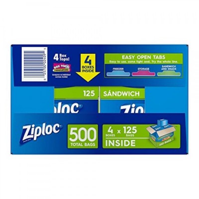 Ziploc Easy Open Tabs Sandwich Bags 125 Count (Pack of 4)