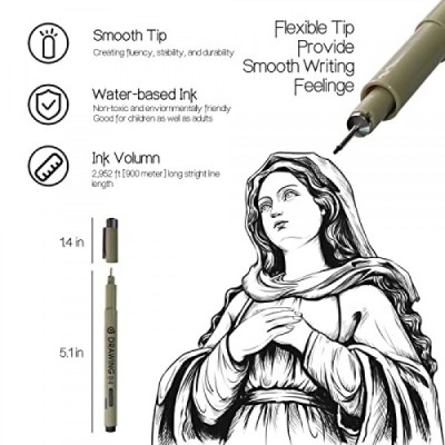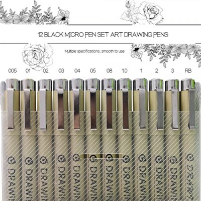 GCVOPTON 12Pcs Black Micron Pen Set, Micro Fineliner Drawing Art Pens, Micro-Pen Fineliner Ink Set, Micron Pens for Artist Illustration, Sketch Outline, Technical Drawing