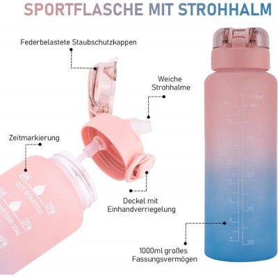 1L Trinkflasche, Sport Trinkflasche-[BPA-frei Tritan], 1000ml Motivierende Wasserflasche mit Strohhalm und Zeitstempel - auslaufsichere Flasche für Radfahren, Camping, Fitnessstudio (Pink/Blau)