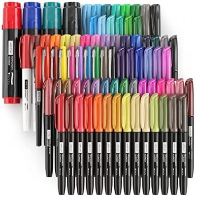 Arteza Permanent Markers, Set of 80, 61 Assorted Colors Paint Pens, Waterproof, Crafts Supplies for Stone, Glass, Wood, and Metal, Art Supplies for Calligraphy, Coloring, Painting