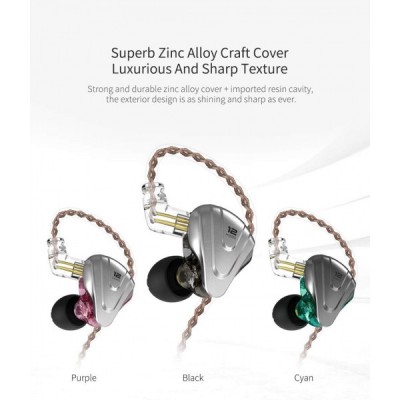 NEX KZ ZSX 5BA + 1DD 6 Treiber Hybrid IEM HiFi In-Ear-Kopfhörer mit Zinklegierungs-Frontplatte, 0,75 mm 2-polige abnehmbare Kopfhörer mit Geräuschunterdrückung