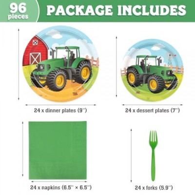 DECORLIFE 트랙터 생일 파티 용품 24인분, 트랙터 접시 및 냅킨 세트, 어린이 남성용 농장 트랙터 생일 장식, 총 96개