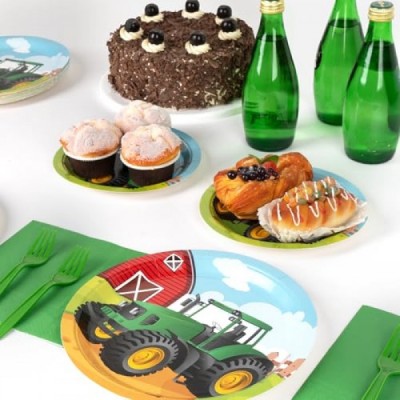 DECORLIFE Tractor Birthday Party Supplies Serves 24, Tractor Plates and Napkins Set, Farm Tractor Birthday Decorations for Kids Men, Total 96 PCS
