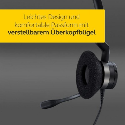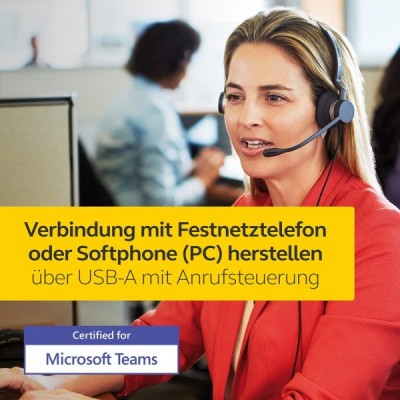 Jabra Biz 2300 USB-A MS On-Ear Mono Headset - Skype for Business zertifizierte Noise Cancelling Kabel-Kopfhörer mit Bedieneinheit für Softphones und Tischtelefone, Schwarz USB-A Microsoft Mono