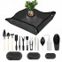 FLMOUTN Foldable Plant Repotting Mat, Gardening Mat with 13Pcs Mini Garden Tools Set and 30Pcs Pot Hole Mesh Pads, Succulent Tool Set for Indoor Miniature Fairy Garden Plant Care (Black)