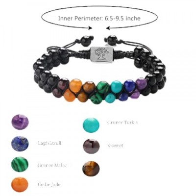 QINJIEJIE 7 차크라 정품 천연석 팔찌 여성 생명의 나무 진주 팔찌 차크라 보석 요가 팔찌 남성과 여성을위한 다채로운 더블 팔찌 Reiki 보석