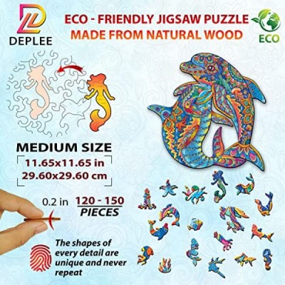 성인을 위한 DEPLEE 나무 직소 퍼즐, 돌고래 나무 직소 퍼즐, 162개 – 11.6 x 11.6인치 성인, 가족, 친구를 위한 독특한 모양의 나무 동물 퍼즐 창의적 도전 |중간