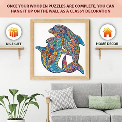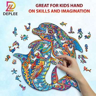 DEPLEE Wooden Jigsaw Puzzles for Adults, Dolphin Wooden Jigsaw Puzzles, 162 Pcs– 11.6 x 11.6 in Unique Shape Wooden Animal Puzzle Creative Challenge for Adults, Family, Friend |Medium