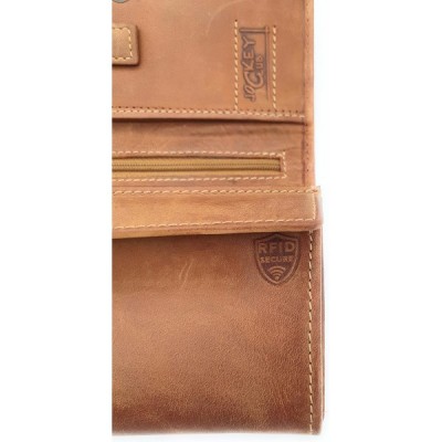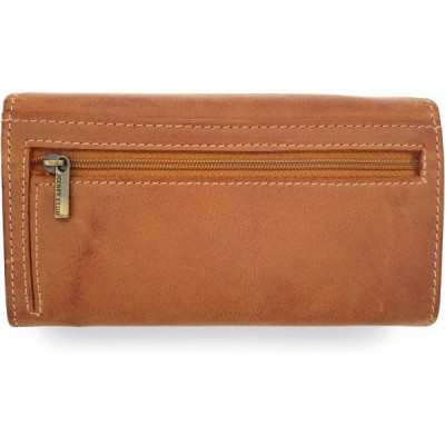 RFID 보호 기능이 있는 정품 가죽 여성용 지갑, 긴 천연 헌터 가죽 Jockey Club Toro Rustique Cognac