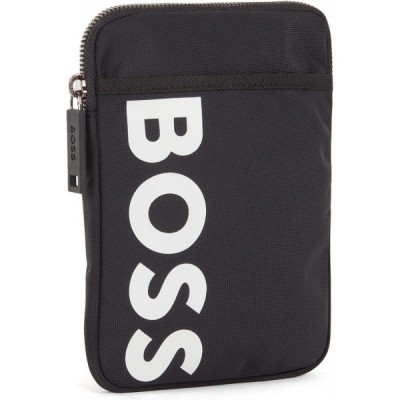 BOSS Mens Catch Phone pouch Recycled-nylon neck pouch with gloss logo Size Black
