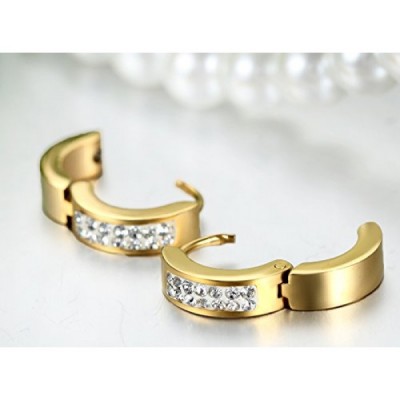 JewelryWe Jewellery 남성용 여성용 귀걸이, 스테인레스 스틸 라인스톤 광택 후프 귀걸이, 골드 레드 실버