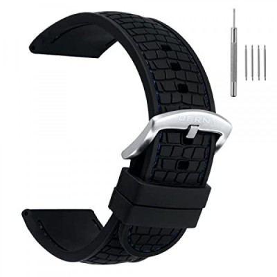 BERNY Silicone Watch Bands Soft Rubber Waterproof Replacement Watch Straps with Stainless Steel Buckle Assroted Colors - 22mm, 24mm for Men and Women (Grey, Blue, Green, Gold)